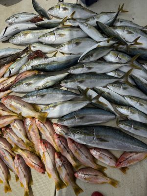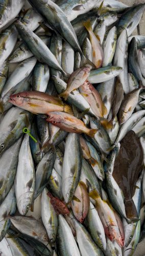 週半ば、のませ釣りにて出船しました。潮回りも良く、青物いい感じに当たってくれました!釣り初めての方も含めて皆様、全員安打といい感じでしたよ♪ノマセいい感じになってくれました!