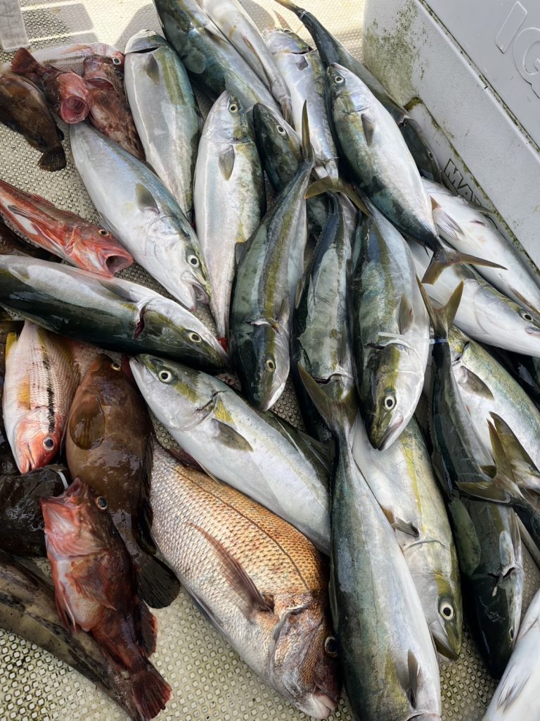 落とし込み釣り、ベイトが安定しませんが地合いに乗っかればバタバタっと青だったり、根魚だったり当たってくれます。